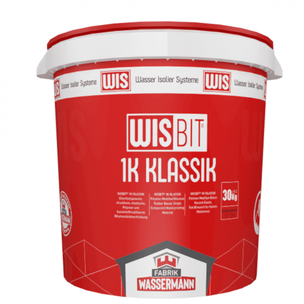 WISBIT® 1K KLASSIK Polimer modifiyeli bitüm kauçuk esaslı, tek bileşenli su yalıtım ürünüdür. Fırça, mala veya sprey makinası ile kolayca uygulanır, kalıcı esnek bir yalıtım sağlar.