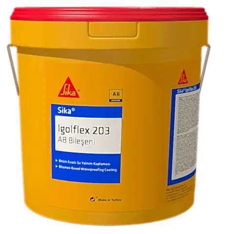 Sika® Igolflex-203 iki bileşenli çimento ve bitüm kauçuk esaslı su yalıtım malzemesidir. Birinci bileşen sıvı bitüm kauçuk, ikinci bileşen hızlı kürlenmeyi sağlayan reaktif malzemeyi içerir.